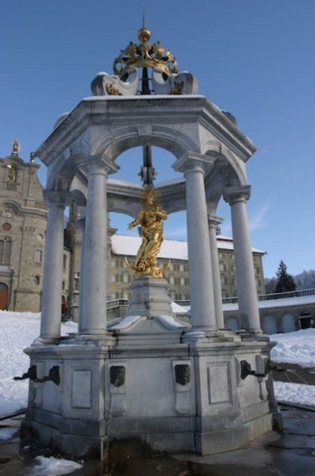 Documentos del siglo XIV dan testimonio de Einsiedeln como lugar de peregrinación. Y más tarde, un verdadero bastión del catolicismo contra la Reforma protestante. Aún hoy, como en el pasado, es un centro mariano y religioso de primer orden. El edificio, destruido durante la Revolución de 1798, fue reconstruido, con las mismas dimensiones, en 1817.